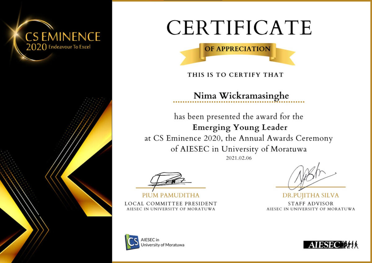 Emerging Young Leader | AIESEC in University of Moratuwa | CS Eminence 2020